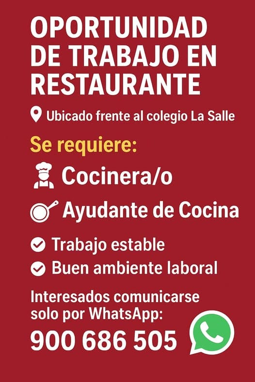 Interesados comunicarse solo por WhatsApp al: 900 686 505